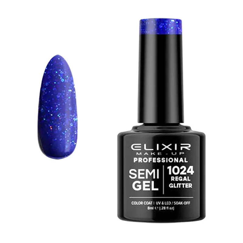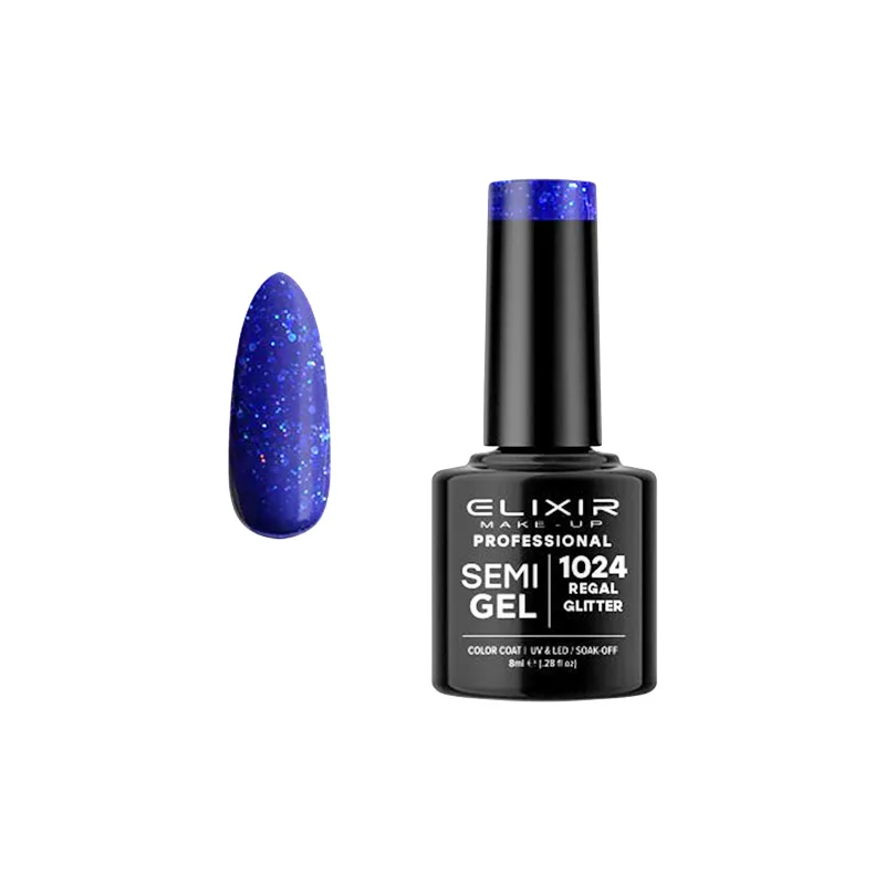 Elixir Professional Semi Gel Ημιμόνιμο Βερνίκι Νυχιών 1024 Regal Glitter Μπλε Ηλεκτρικ 8ml