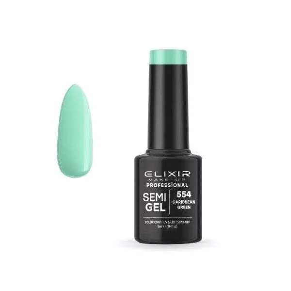 Elixir Professional Semi Gel Ημιμόνιμο Βερνίκι Νυχιών 554 Caribbean Green Πράσινο Βεραμάν 5ml