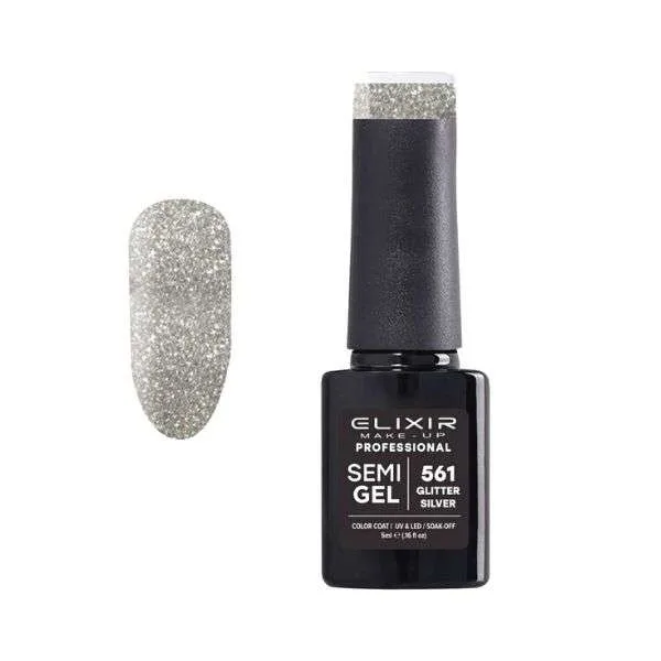 Elixir Professional Semi Gel Ημιμόνιμο Βερνίκι Νυχιών 561 Silver Glitter Ασημί Λεπτό Γκλίτερ 5ml