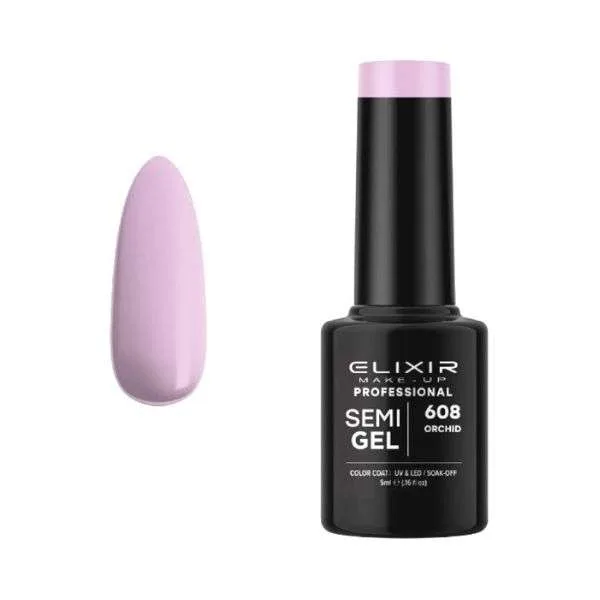 Elixir Professional Semi Gel Ημιμόνιμο Βερνίκι Νυχιών 608 Orchid Oυδέτερο Μωβ 5ml