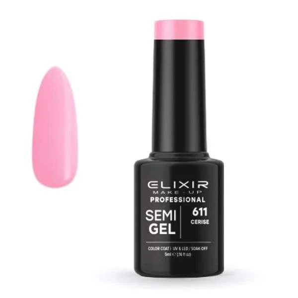 Elixir Professional Semi Gel Ημιμόνιμο Βερνίκι Νυχιών 611 Cerise Ροζ Έντονο 5ml