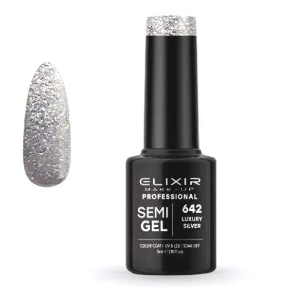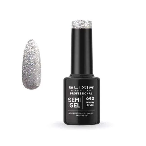 Elixir Professional Semi Gel Ημιμόνιμο Βερνίκι Νυχιών 642 Luxury Silver Διάφανο με Συμπαγές Ασημί Γκλίτερ 5ml