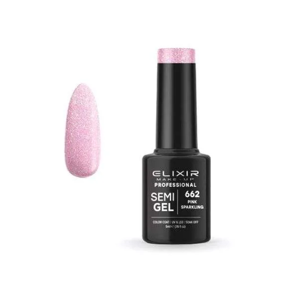 Elixir Professional Semi Gel Ημιμόνιμο Βερνίκι Νυχιών 662 Pink Sparkling Διαφανές Με Συμπαγές Ροζ Shimmer 5ml