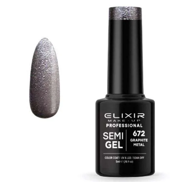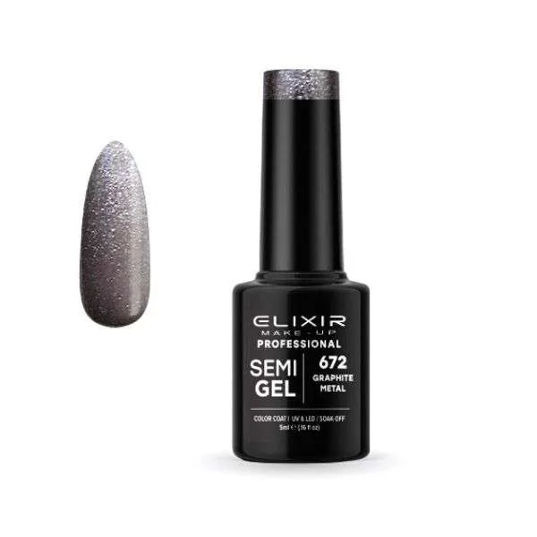 Elixir Professional Semi Gel Ημιμόνιμο Βερνίκι Νυχιών 672 Graphite Metal Μεταλλικό Γραφίτης Συμπαγές Shimmer 5ml