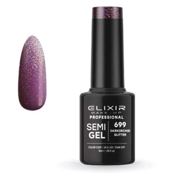 Elixir Professional Semi Gel Ημιμόνιμο Βερνίκι Νυχιών 699 Darkorchid Glitter Μωβ Μπρονζέ Συμπαγές Shimmer 5ml