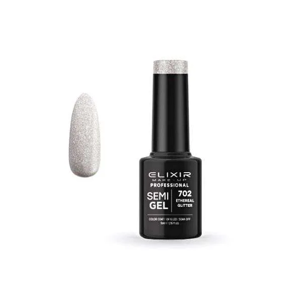 Elixir Professional Semi Gel Ημιμόνιμο Βερνίκι Νυχιών 702 Ethereal Glitter Ασημί Με Πολύχρωμο Shimmer 5ml