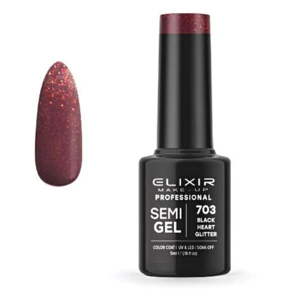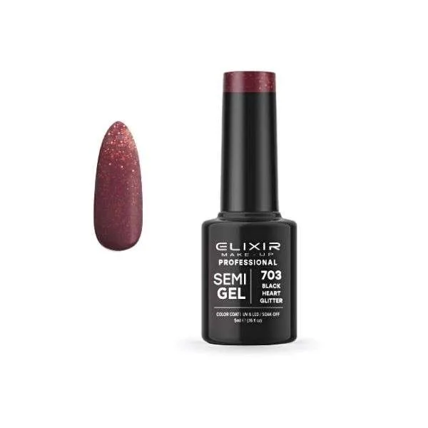 Elixir Professional Semi Gel Ημιμόνιμο Βερνίκι Νυχιών 703 Black Heart Glitter Μπορντό Γκλίτερ 5ml