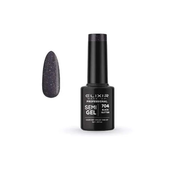 Elixir Professional Semi Gel Ημιμόνιμο Βερνίκι Νυχιών 704 Black Glitter Μαύρο Με Πολύχρωμο Shimmer 5ml