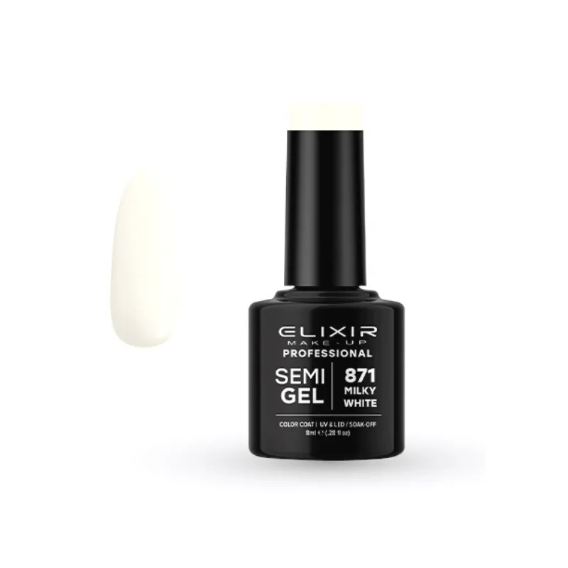 Elixir Professional Semi Gel Ημιμόνιμο Βερνίκι Νυχιών 871 Milky White Λευκό Γαλακτερό 8ml