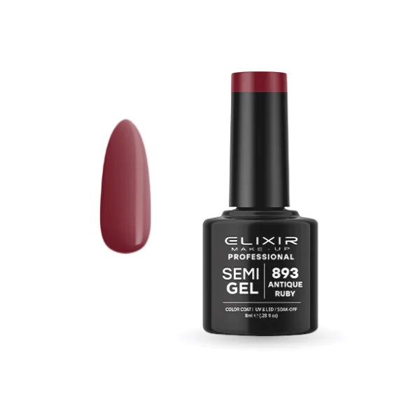Elixir Professional Semi Gel Ημιμόνιμο Βερνίκι Νυχιών 893 Antique Ruby Μπορντώ Βυσσινί 8ml