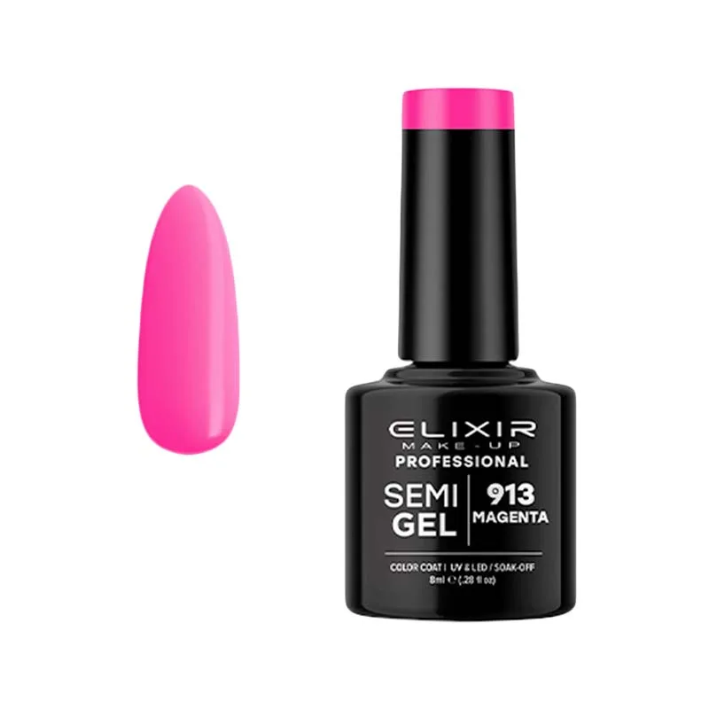 Elixir Professional Semi Gel Ημιμόνιμο Βερνίκι Νυχιών 913 Magenta Ματζέντα 8ml