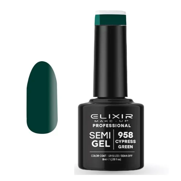 Elixir Professional Semi Gel Ημιμόνιμο Βερνίκι Νυχιών 958 Cypress Green Κυπαρισσί 8ml