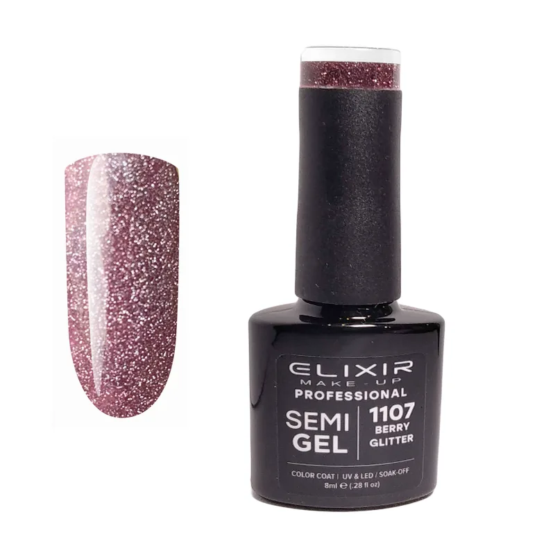 Elixir Professional Semi Gel Ημιμόνιμο Βερνίκι Νυχιών Flash Effect 1107 Berry Glitter Μπορντώ Εφέ Flash 8ml