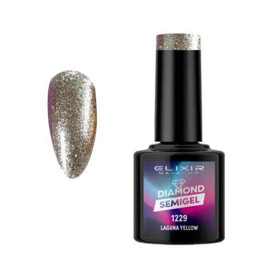 Elixir Professional Semi Gel Ημιμόνιμο Βερνίκι Νυχιών Laser Diamond Effect 1229 Laguna Yellow Χρυσό Με Πολύχρωμο Glitter 8ml