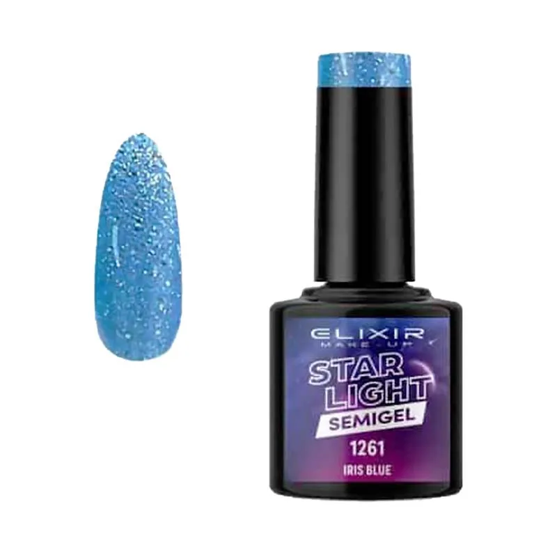Elixir Professional Semi Gel – Ημιμόνιμο Βερνίκι Νυχιών Star Light Effect 1261 Iris Blue Γαλάζιο Glitter 8ml