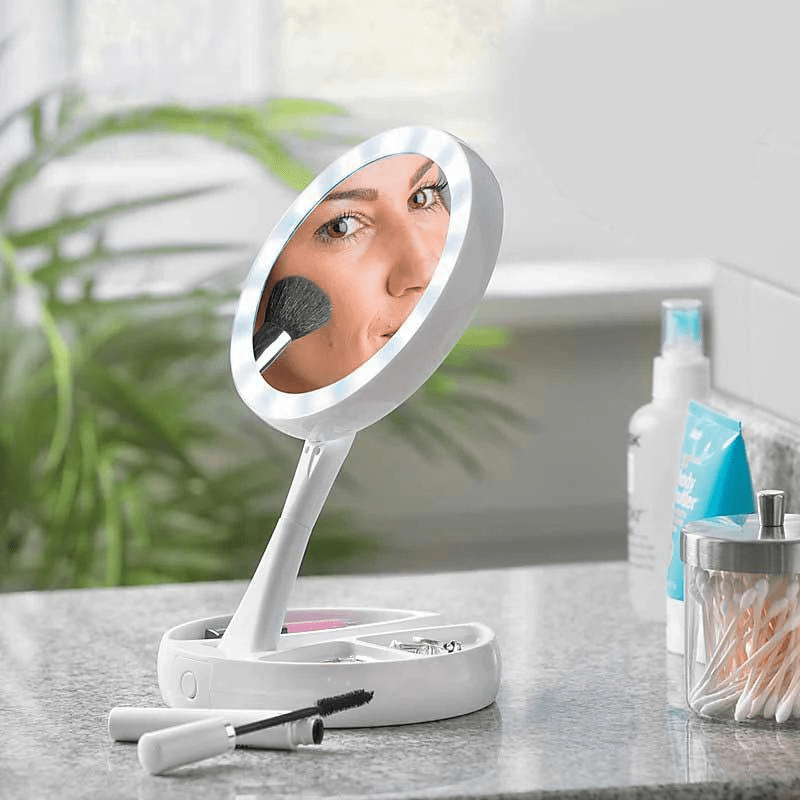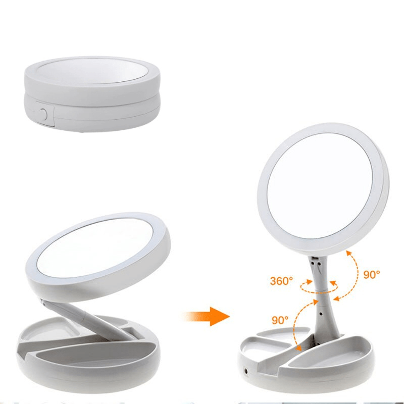 Ένας καθρέφτης Μακιγιάζ φωτισμό Led για τέλειο μακιγιάζ 2 σε 1 γιατί διαθέτει δύο καθρέπτες ένα κανονικό και ένα μεγέθυνση !