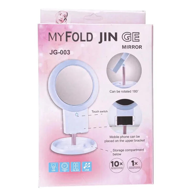Emson My Fold Jin Mirror – Καθρέφτης με Φωτισμό LED Διπλής Όψης με ύψος 29cm & διάμετρο 17cm Λευκός με x10 Μεγέθυνση