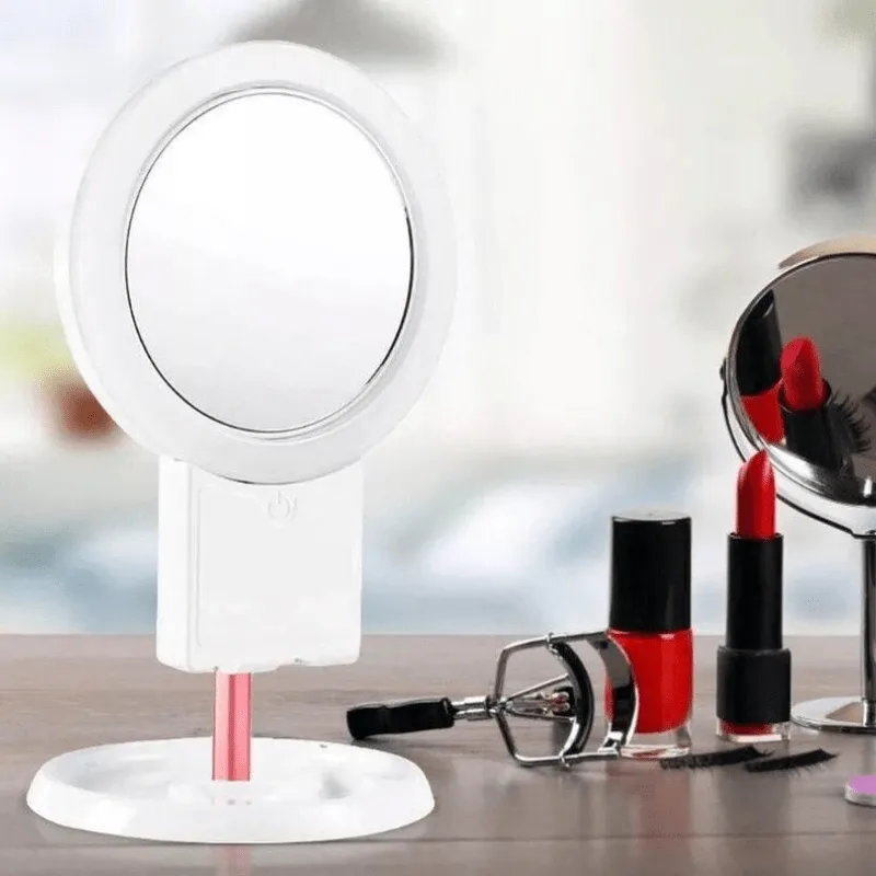 Ένας καθρέφτης Μακιγιάζ με φωτισμό Led για τέλειο μακιγιάζ 2 σε 1 γιατί διαθέτει δύο καθρέπτες, ένα κανονικό και ένα με μεγέθυνση !