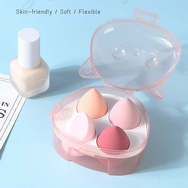 - 4 σφουγγαράκια μακιγιάζ σε τέσσερις διαφορετικούς συνδυασμούς χρωμάτων ανάλογα με τη διαθεσιμότητα