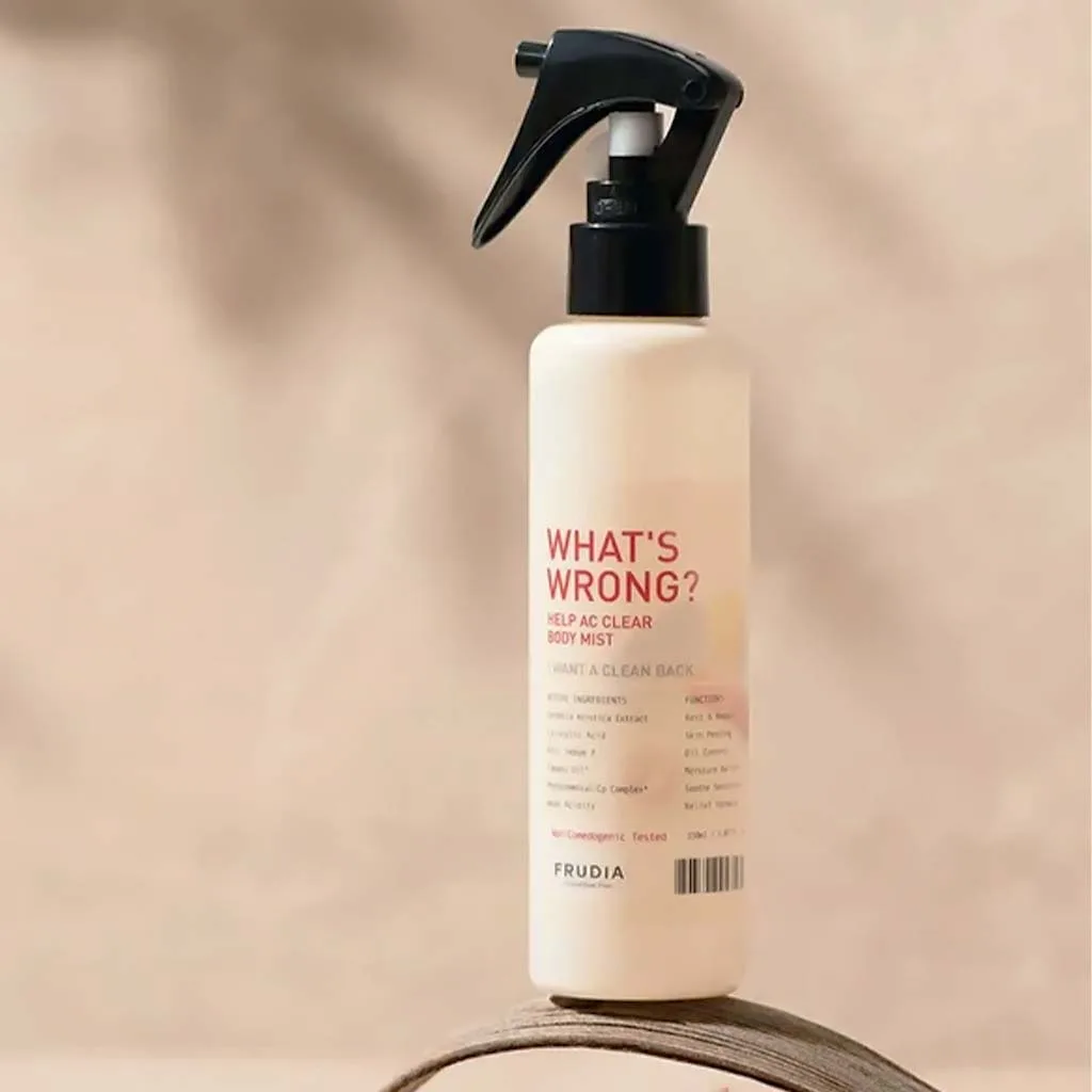 Το FRUDIA What’s Wrong Help AC Clear Body Mist είναι ένα καθαριστικό σπρέι σώματος ειδικά σχεδιασμένο για λιπαρό, επιρρεπές σε ατέλειες και ακμή δέρμα. Σχεδιασμένο για περιοχές όπως η πλάτη, το στήθος και οι ώμοι, προσφέρει στοχευμένη φροντίδα χωρίς να αφήνει κολλώδη ή λιπαρά υπολείμματα. Η ελαφριά, ταχείας απορρόφησης σύνθεση είναι ιδανική για καθημερινή χρήση και βοηθά στην καταπράυνση, τη διαύγεια και την ανανέωση του δέρματος χωρίς ερεθισμούς.