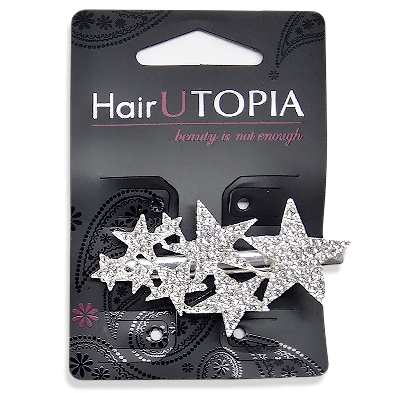 Hair Utopia Clip Μανταλάκι Μαλλιών με Αστέρια & Λευκά Strass Μεταλλικό Ασημί