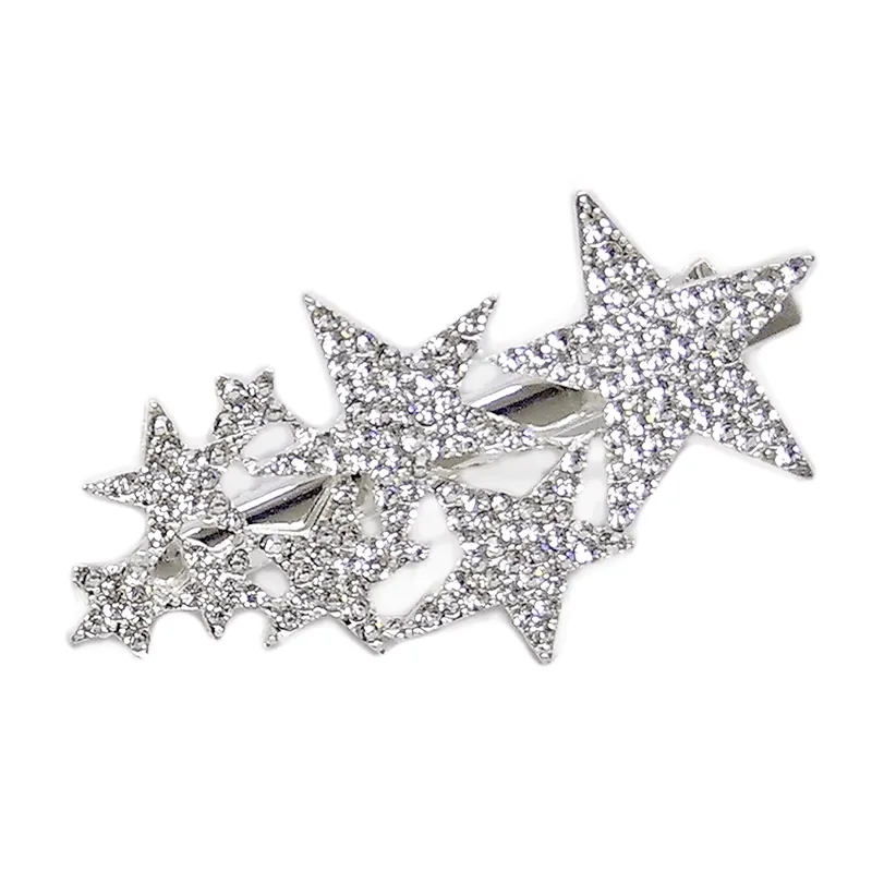 Μανταλάκι μαλλιών μεταλλικό με σχέδιο αστεριών ντυμένα με λευκό στρας. Διαθέτει δυνατό κράτημα και δεν κόβει την τρίχα.