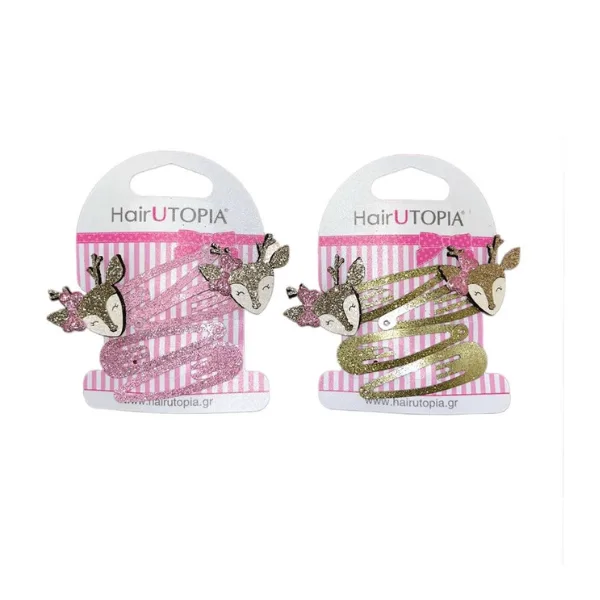 Hair Utopia Clips Μαλλιών με Ελαφάκι 4pcs Φούξια