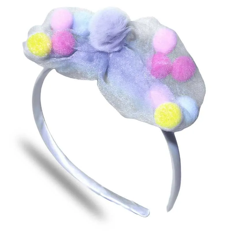 Hair Utopia Παιδική στέκα μαλλιών με Πολύχρωμα Μαλακά Μπαλάκια σε Οργάντζα.