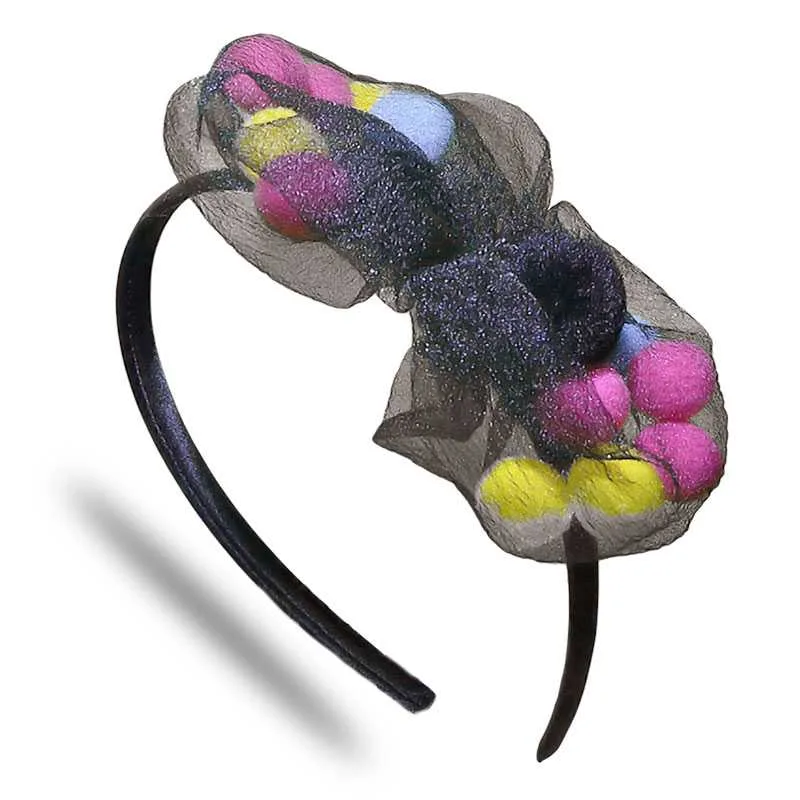 Hair Utopia Παιδική στέκα μαλλιών με Πολύχρωμα Μαλακά Μπαλάκια σε Οργάντζα Μαύρη
