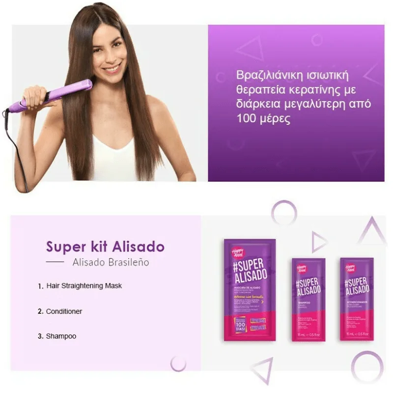 Happy Anne Extreme Care Super Alisado Brazilian Straightening Kit Σετ Περιποίησης Μαλλιών για Ισιωτική 3τμχ