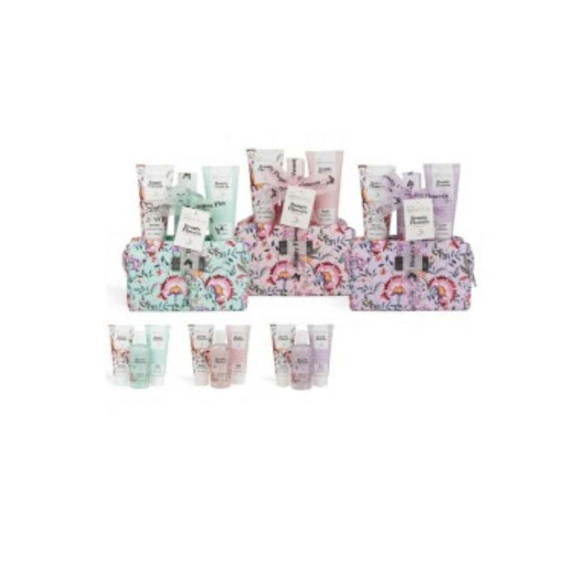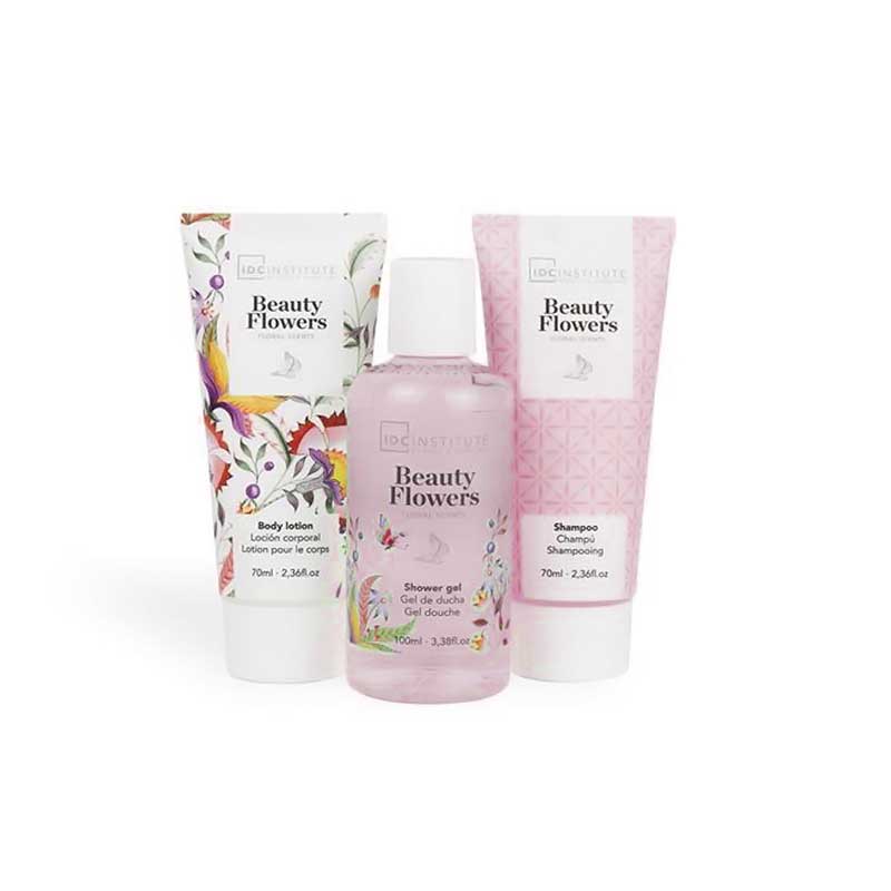IDC Beauty Flowers Bag Gift Set – 70ml Shower Gel, 70ml Shampoo, 70ml Body Lotion & Cosmetic Bag Green Floral