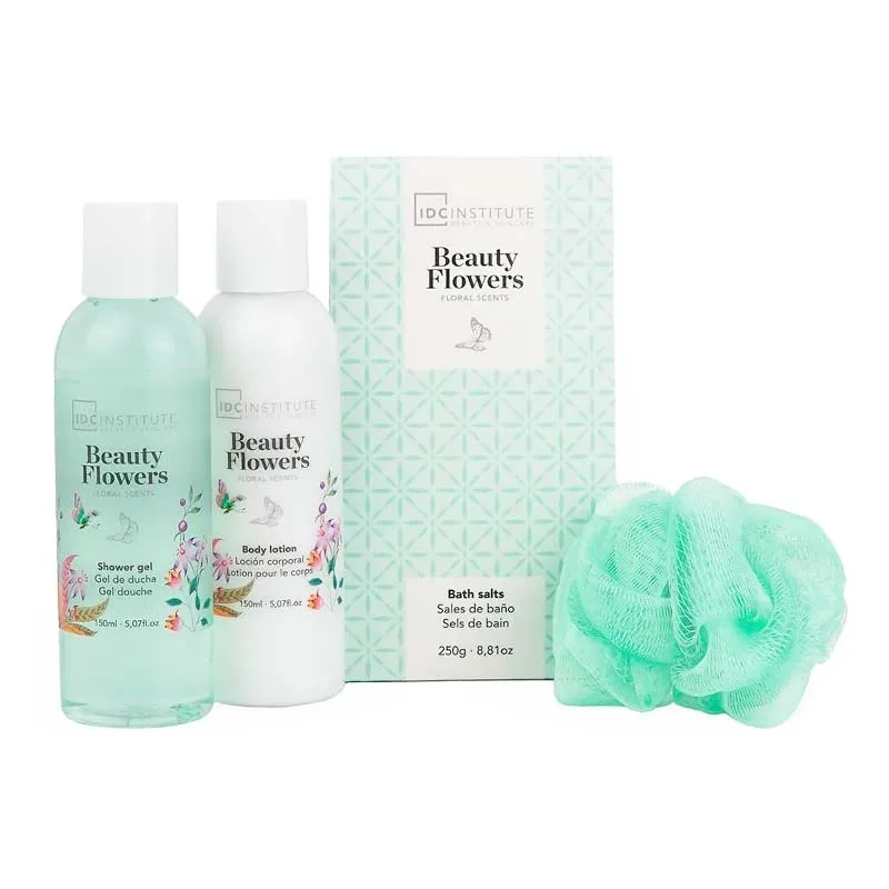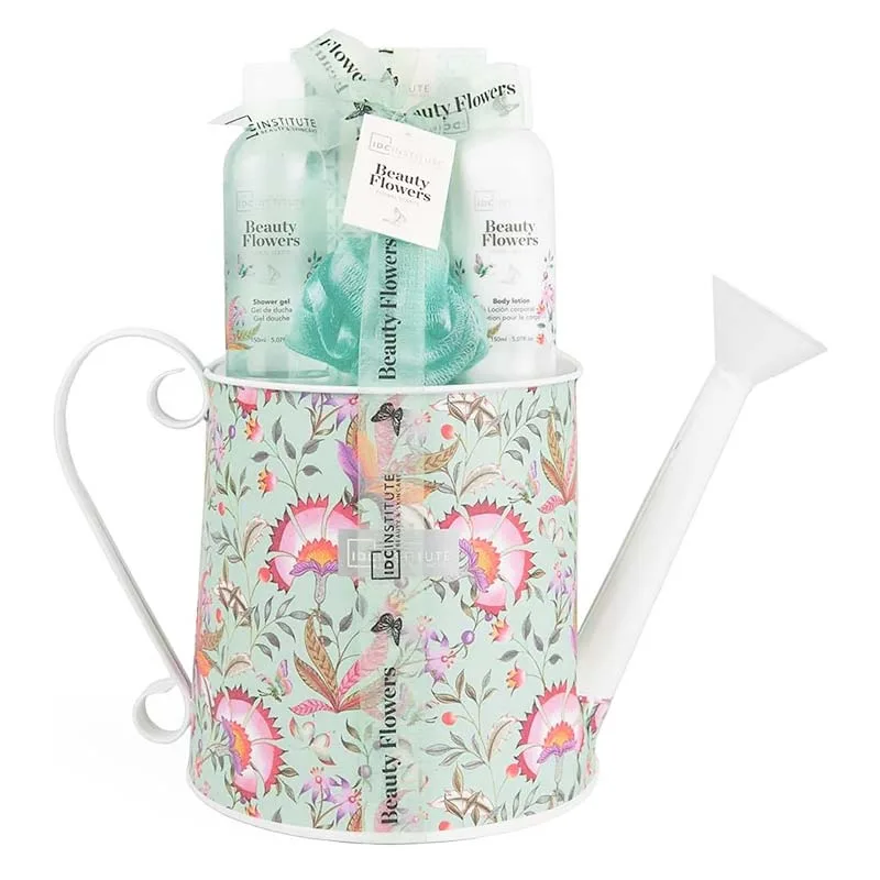 IDC Beauty Flowers Mega Watercan Gift Set – 150ml Shower Gel, 150ml Body Lotion, 250g Bath Salts & Sponge Puff