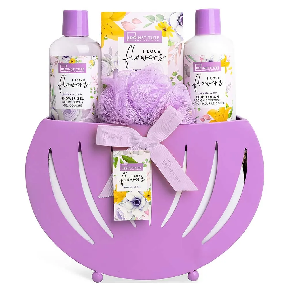 IDC Institute I Love Flowers Lavender & Iris Basket Σετ Μπάνιου – Περιποίησης με Άρωμα Λεβάντα & Ίριδα 5pcs 24 x 28 x 7cm
