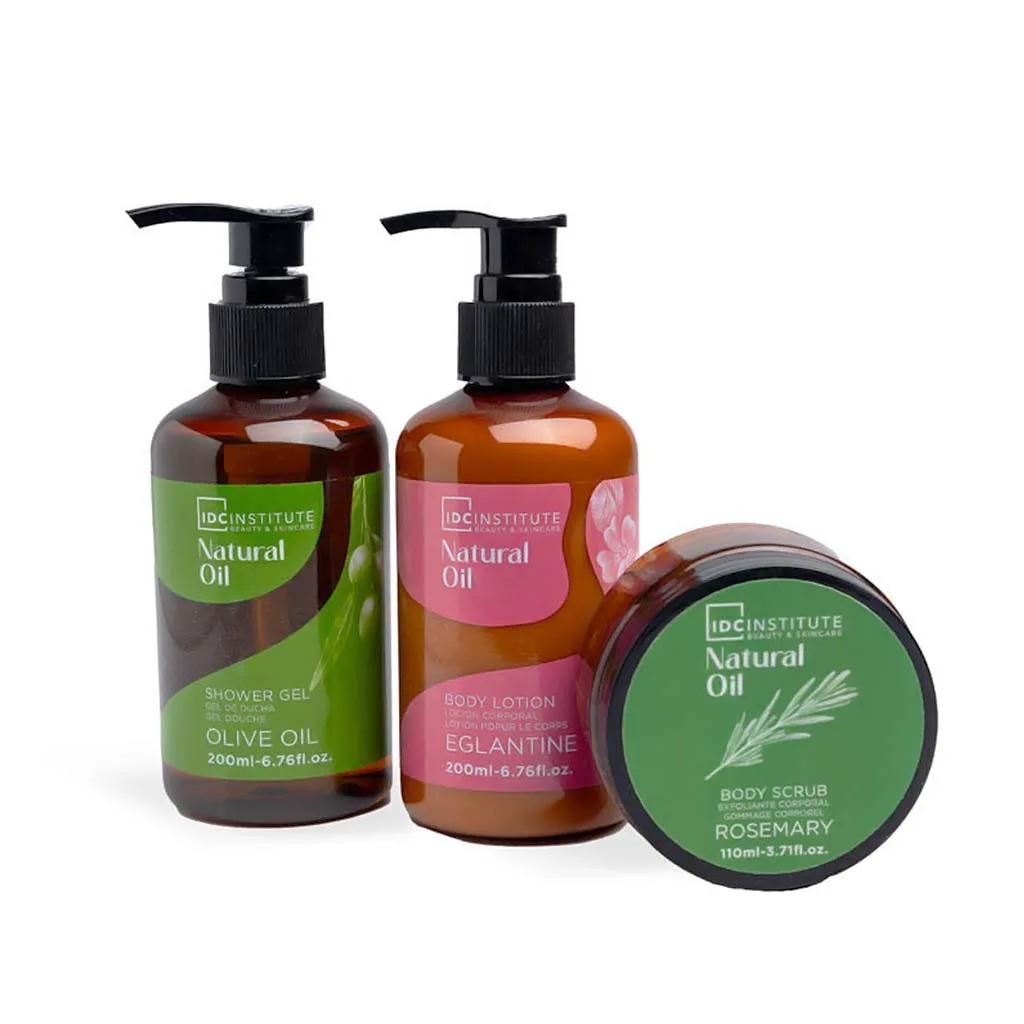 IDC Institute Natural Oil Basket Σετ Μπάνιου – Περιποίησης με Φυτικά Έλαια 4pcs Φ13 x Η22cm