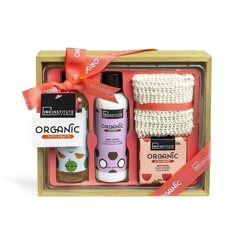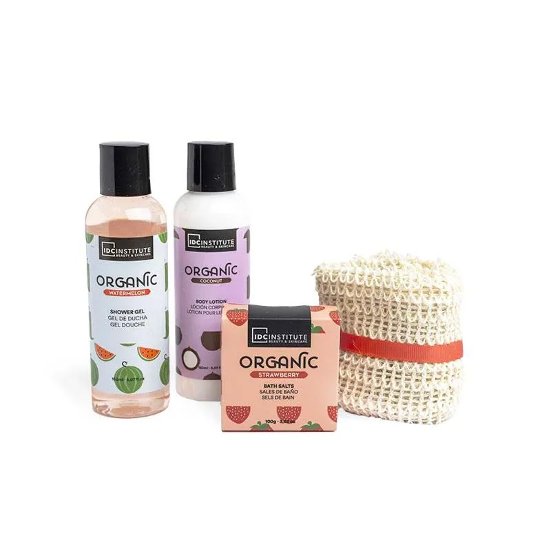 Ένα υπέροχο σετ δώρου με προϊόντα περιποίησης IDC Organic με γλυκά και φρουτένια αρώματα από καλοκαιρινά φρούτα.