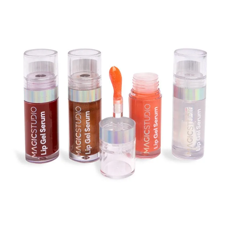 Βελτιώστε τα χείλη σας με το Magic Studio Lip Gel Serum, διαθέσιμο σε τέσσερις διακριτικές αποχρώσεις: nude καφετί, ροζ ροδακινί, μωβ κόκκινο και διάφανο.