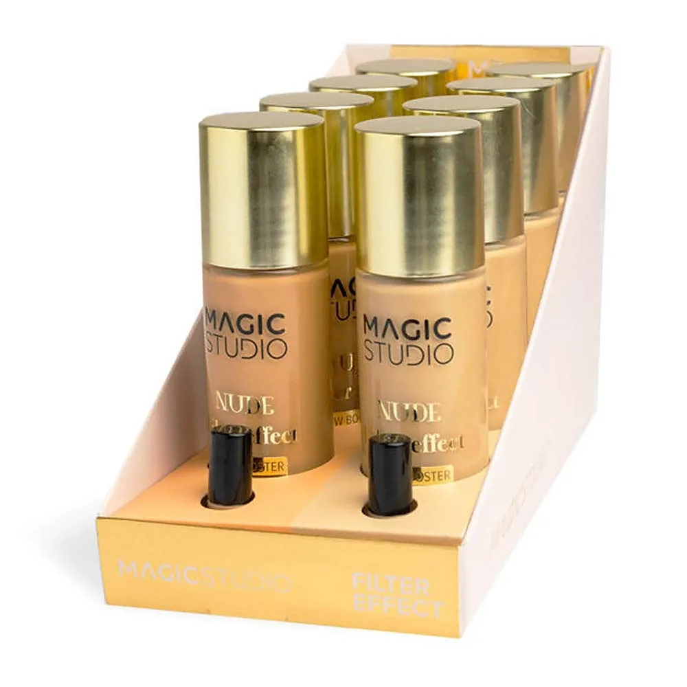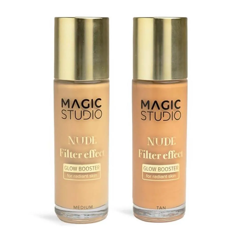 Το Magic Studio Nude Filter συνδυάζει τα πλεονεκτήματα ενός ασταριού, του highlighter και της βάσης, θολώνοντας τις ατέλειες και προσφέροντας ένα φωτεινό, έτοιμο φινίρισμα.