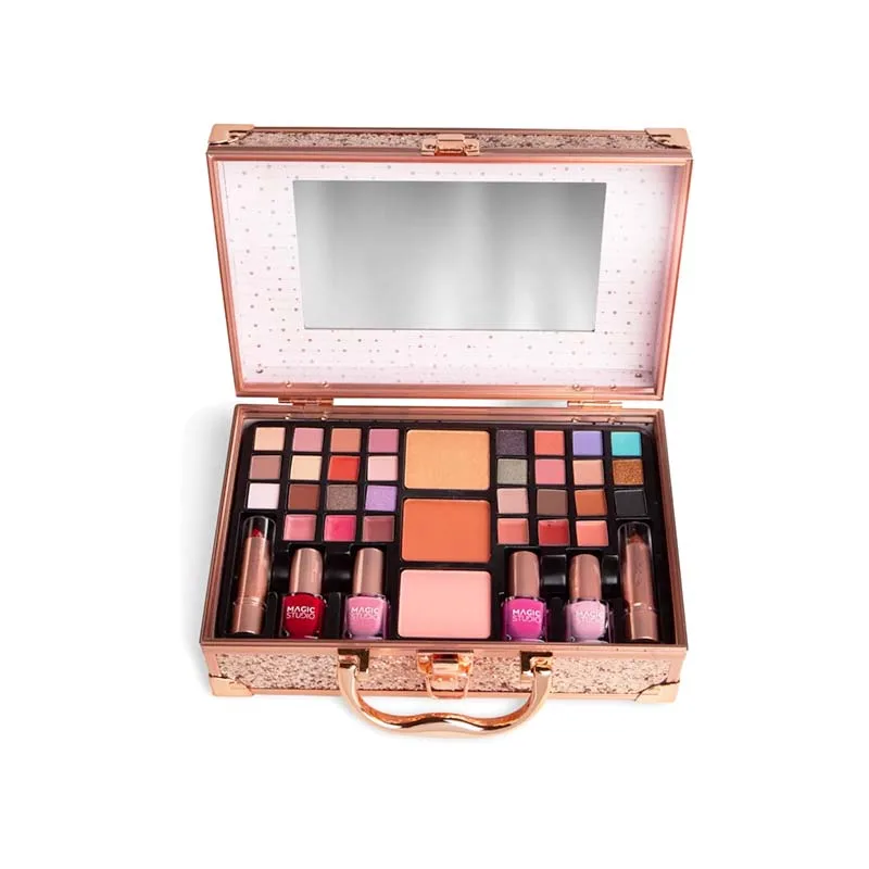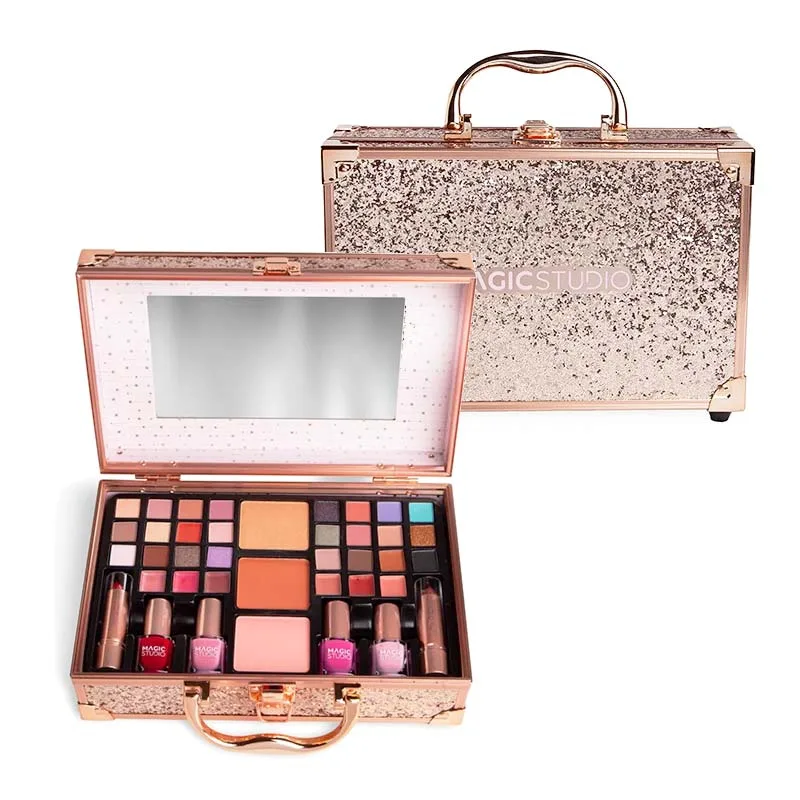 Ένα βαλιτσάκι καλλυντικών με όλα όσα χρειάζεστε. IDC Magic Studio Rose Quartz Case Βαλιτσάκι Μακιγιάζ Ροζ Χρυσό Γκλίτερ