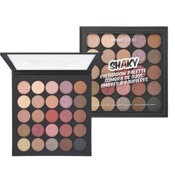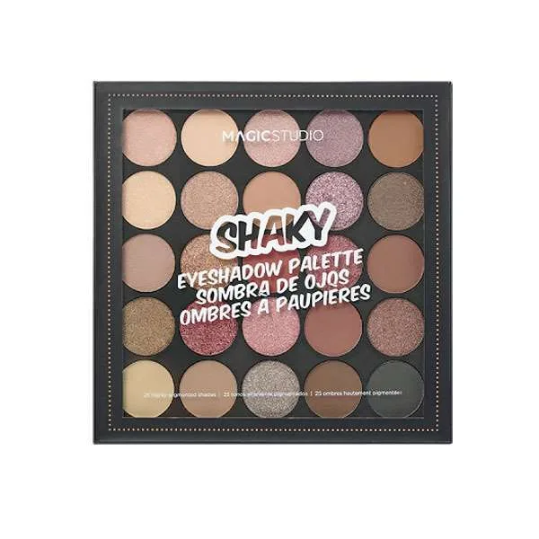 Η Magic Studio SHAKY Eyeshadow Palette είναι παλέτα με 25 σκιές ματιών σε ιδιαίτερα γήινα αλλά έντονα χρώματα. Η παλέτα περιέχει σκιές ματ μονόχρωμες αλλά και σκιές με ελαφρύ γκλίτερ.