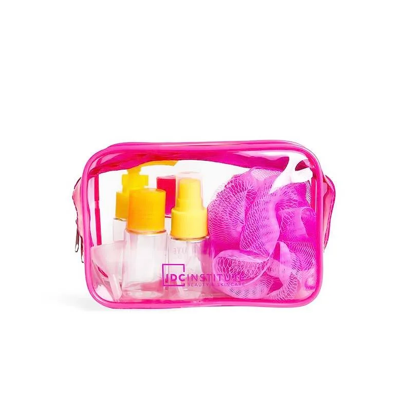 IDC Neon Cosmetic Bag & Bottle Travel Set Μπουκαλάκια Άδεια 4 x 30ml, Χωνάκι Γεμίσματος & Σφουγγαράκι