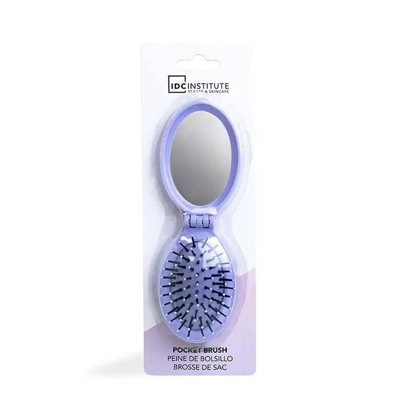 IDC Pocket Pop Out Brush With Mirror – Πτυσσόμενη Bούρτσα Mαλλιών με Kαθρεφτάκι Μωβ