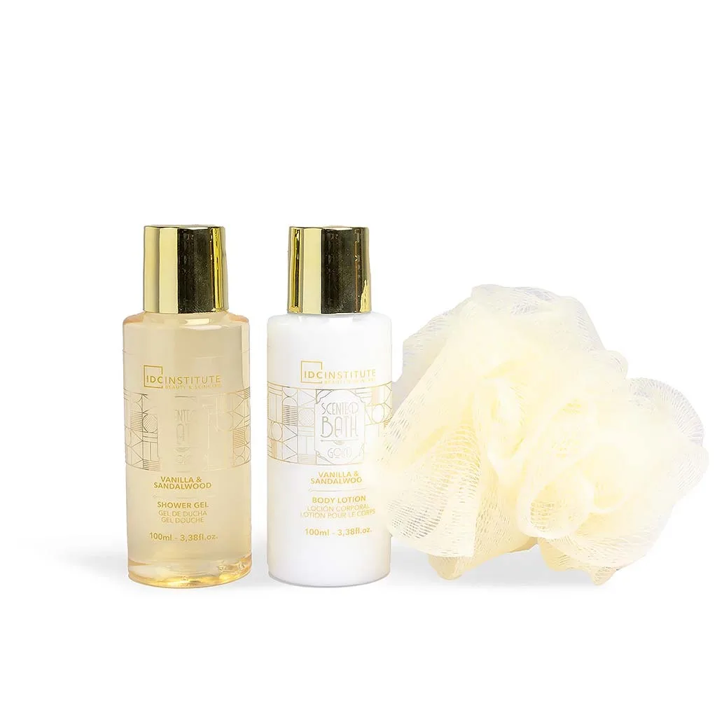 IDC Scented Bath Gold Cosmetic Bag Set Vanilla & Sandalwood 4pcs
