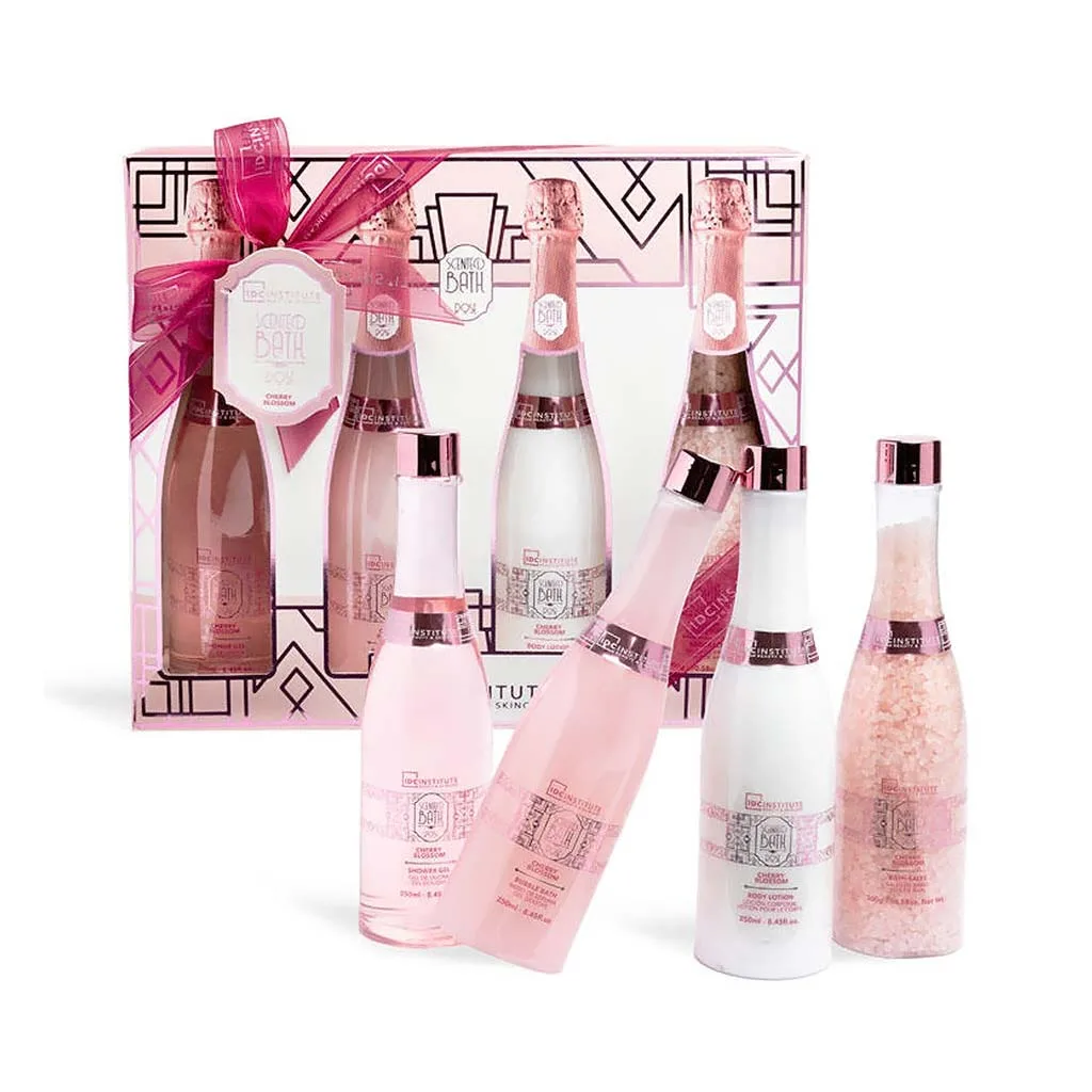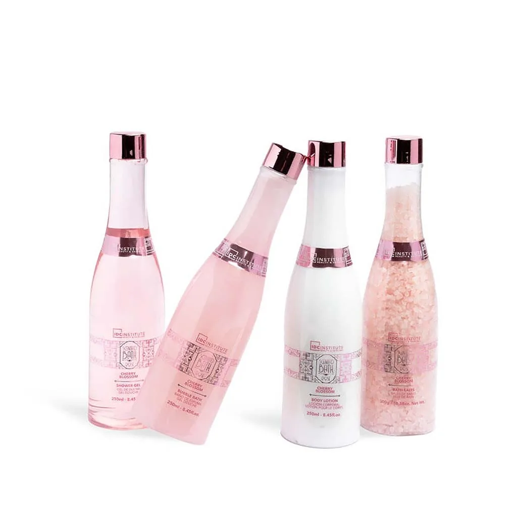 IDC Scented Bath Rose Cherry Blossom 4 Bottle Set , Σετ Δώρου Μπάνιου W26x H23 x D6cm 4pcs