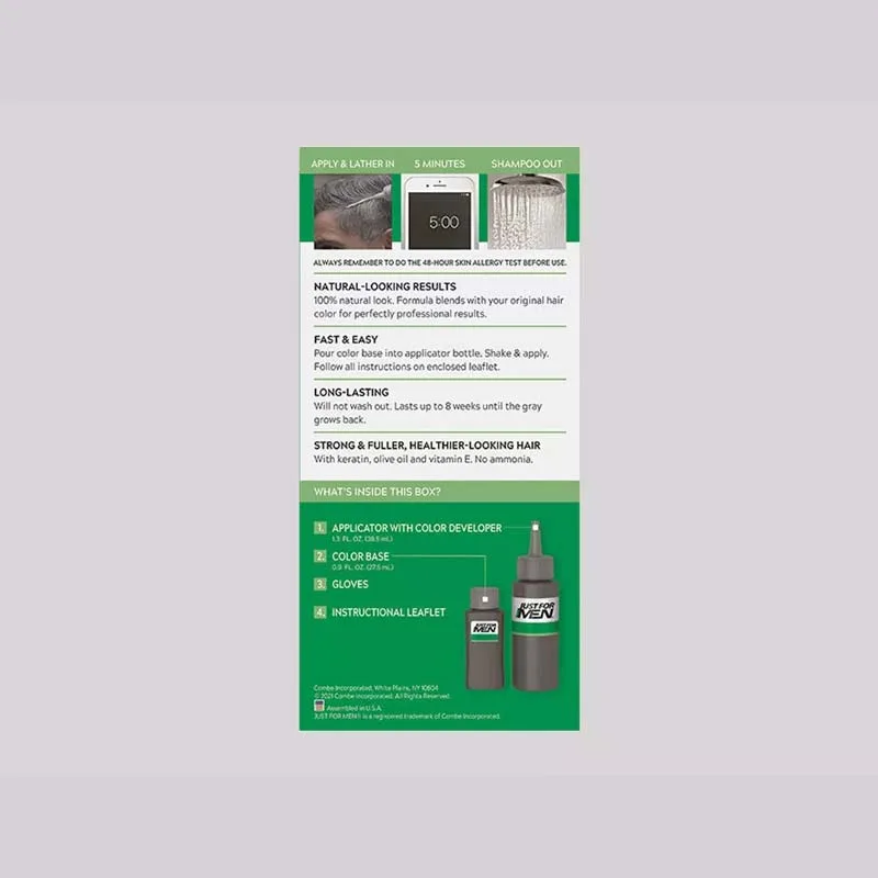 - Καλύπτει τις γκρίζες τρίχες των μαλλιών χωρίς να προκαλέι ερεθισμούς σε 5 λεπτά