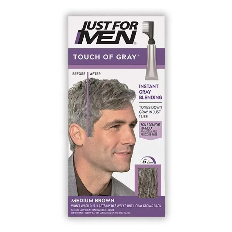 Just For Men Touch Of Grey Instant Grey Blending – Σετ Βαφής Φυσικής Μερικής Κάλυψης Γκρίζων Τ-35 Medium Brown Καστανό