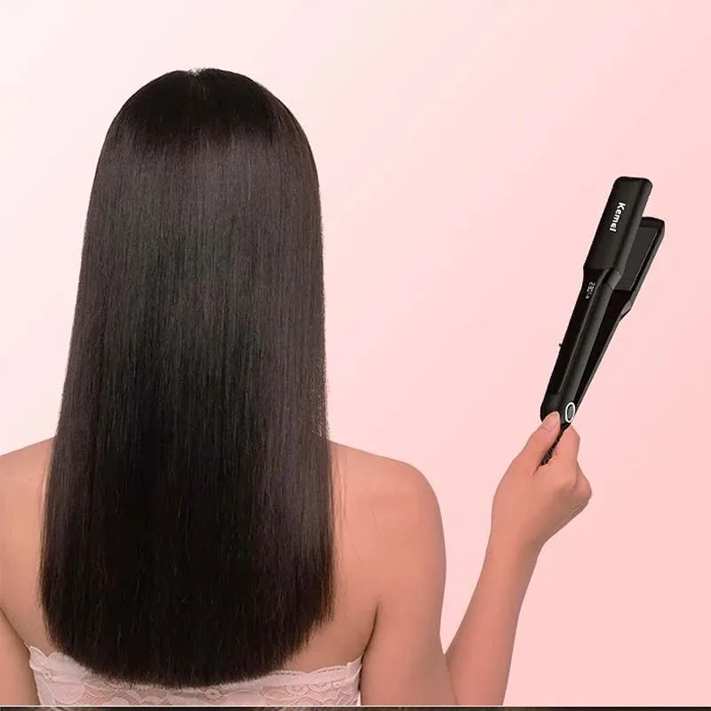 Η πρέσα της Kemei προσφέρει απόλυτο ίσιωμα, ανεξάρτητα από τον τύπο μαλλιών, χάρη στην συνεχή και προγραμματισμένη ροή ατμού και στη ρυθμιζόμενη θερμοκρασία