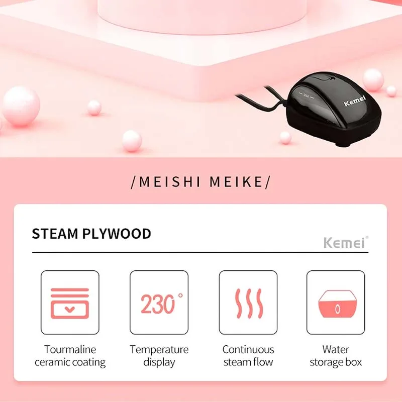 Kemei Steam Plywood ΚΜ-9090 Πρέσα Μαλλιών για Ίσιωμα Ατμού 65W