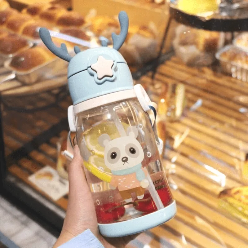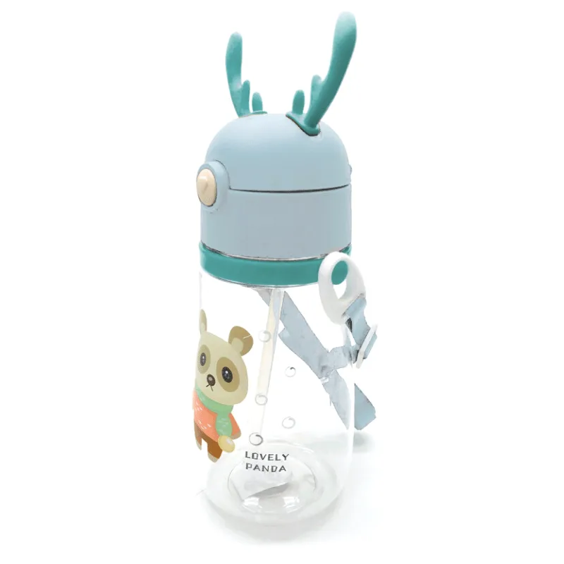 Kettle Deer Παιδικό Πλαστικό Παγούρι με Καλαμάκι Lovely Panda Blue 600ml