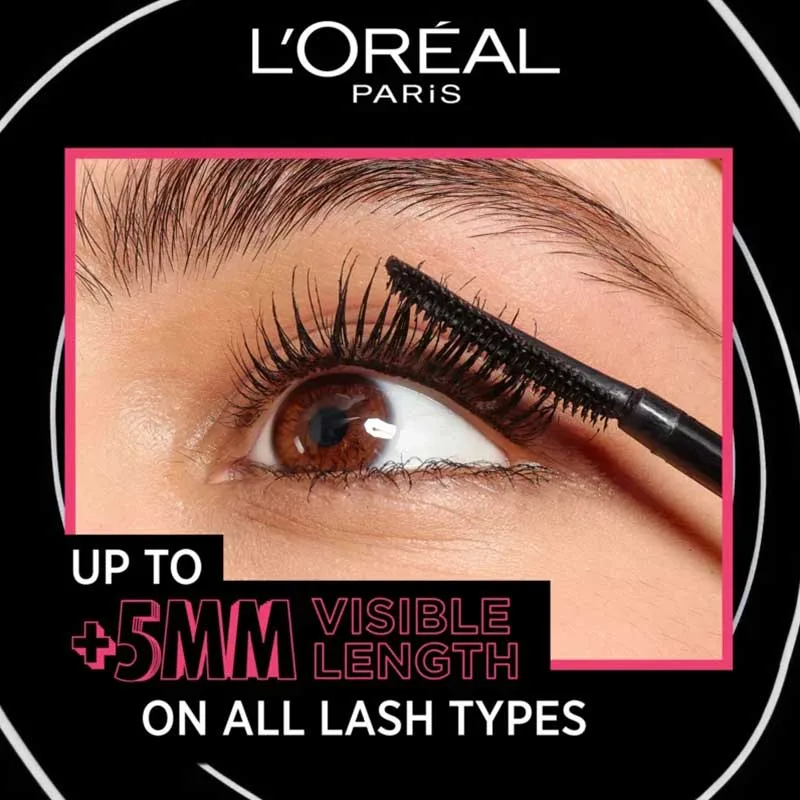 Mascara σε έντονο μαύρο χρώμα της L’Oreal Paris, που προσφέρει όγκο και τονίζει την καμπύλη στις βλεφαρίδες.