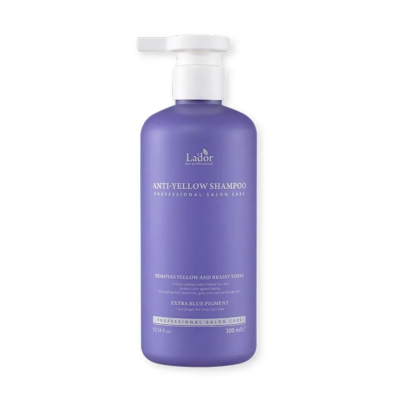 Το σαμπουάν LADOR Anti-Yellow χωρίς θειικά άλατα εξουδετερώνει τις κίτρινες αντανακλάσεις σε βαμμένα, ξανθά ή γκρίζα μαλλιά λόγω του μωβ χρώματός του και αυξάνει τη λάμψη των μαλλιών.